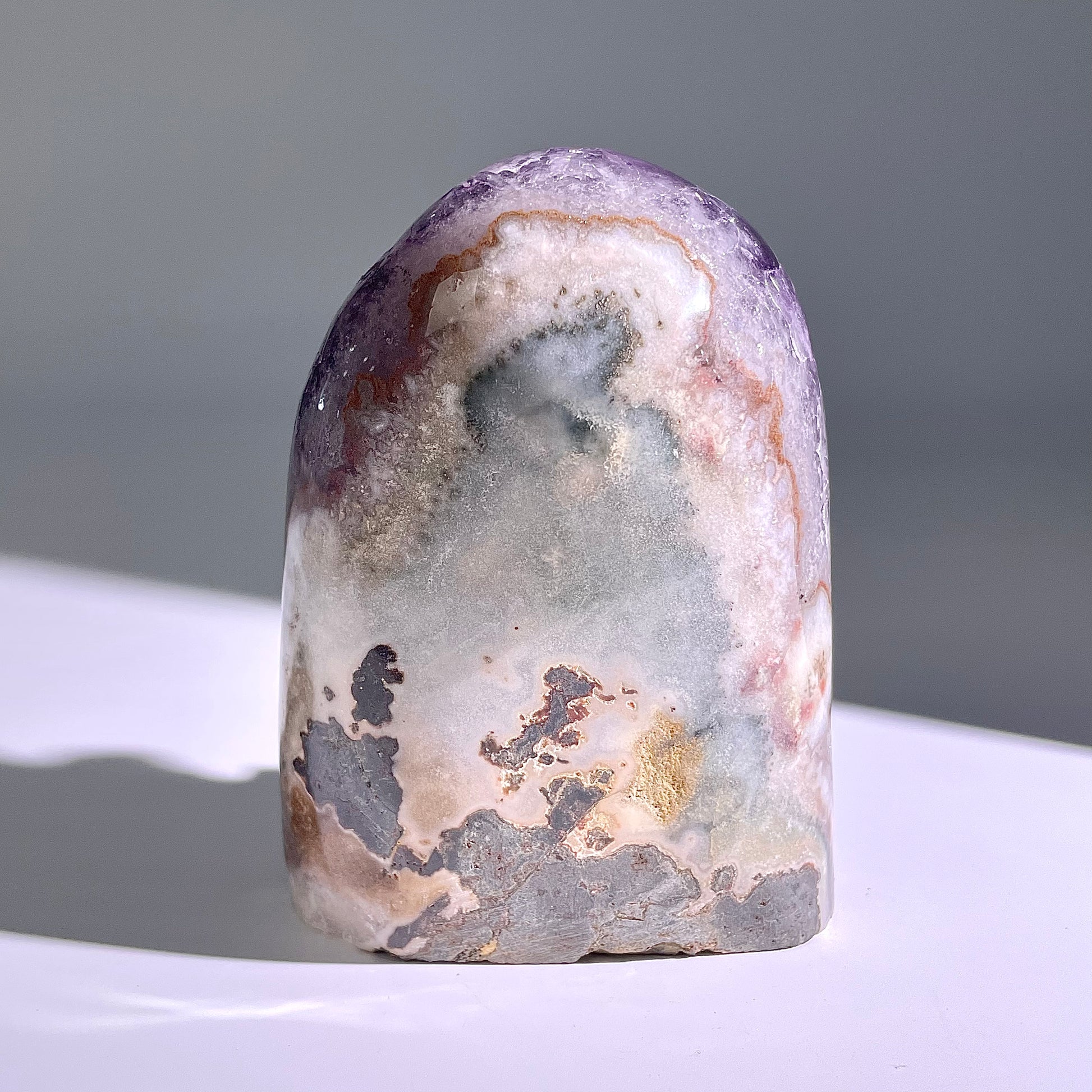 アメジストの故事:江戸時代の江戸城近郊に、寝不足で苦しむ町人の女将がいました。日々の繁忙さで心が休まらず、夜も目がさめ続け、店の経営も不振でした。ある日、行き詰まった女将が浅草寺に参拝したところ、僧侶から「このアメジストを枕元に置けば、心が安らぎ福も招かれる」と授けられました。その晩から女将はぐっすり眠れるようになり、心も落ち着いて経営も順調になりました。この話が広まり、人々はアメジストを「眠りと福の恩恵をもたらす石」と崇め、今でも寝室や玄関に置いて願いを込めています。
