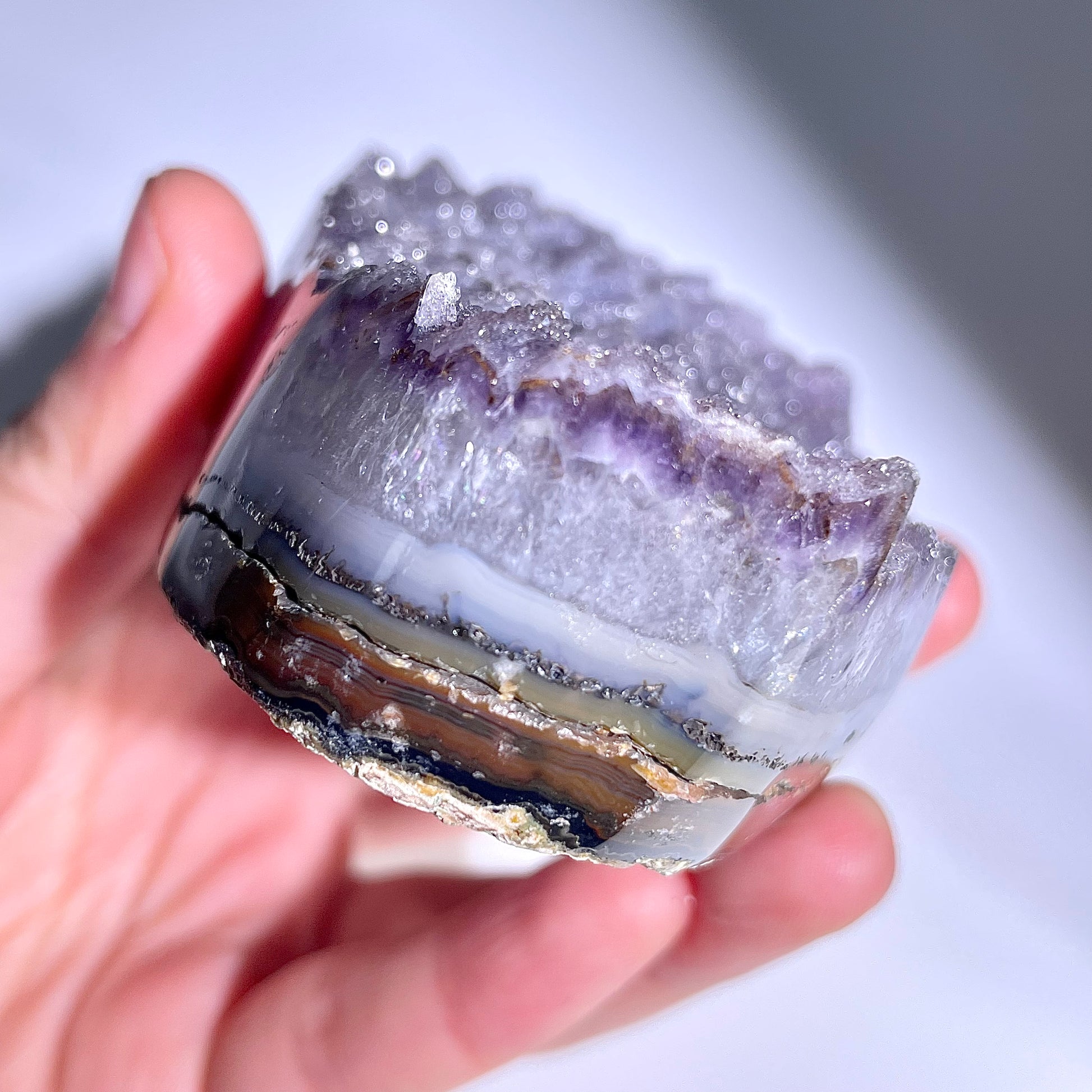 アメジストの故事:江戸時代の江戸城近郊に、寝不足で苦しむ町人の女将がいました。日々の繁忙さで心が休まらず、夜も目がさめ続け、店の経営も不振でした。ある日、行き詰まった女将が浅草寺に参拝したところ、僧侶から「このアメジストを枕元に置けば、心が安らぎ福も招かれる」と授けられました。その晩から女将はぐっすり眠れるようになり、心も落ち着いて経営も順調になりました。この話が広まり、人々はアメジストを「眠りと福の恩恵をもたらす石」と崇め、今でも寝室や玄関に置いて願いを込めています。