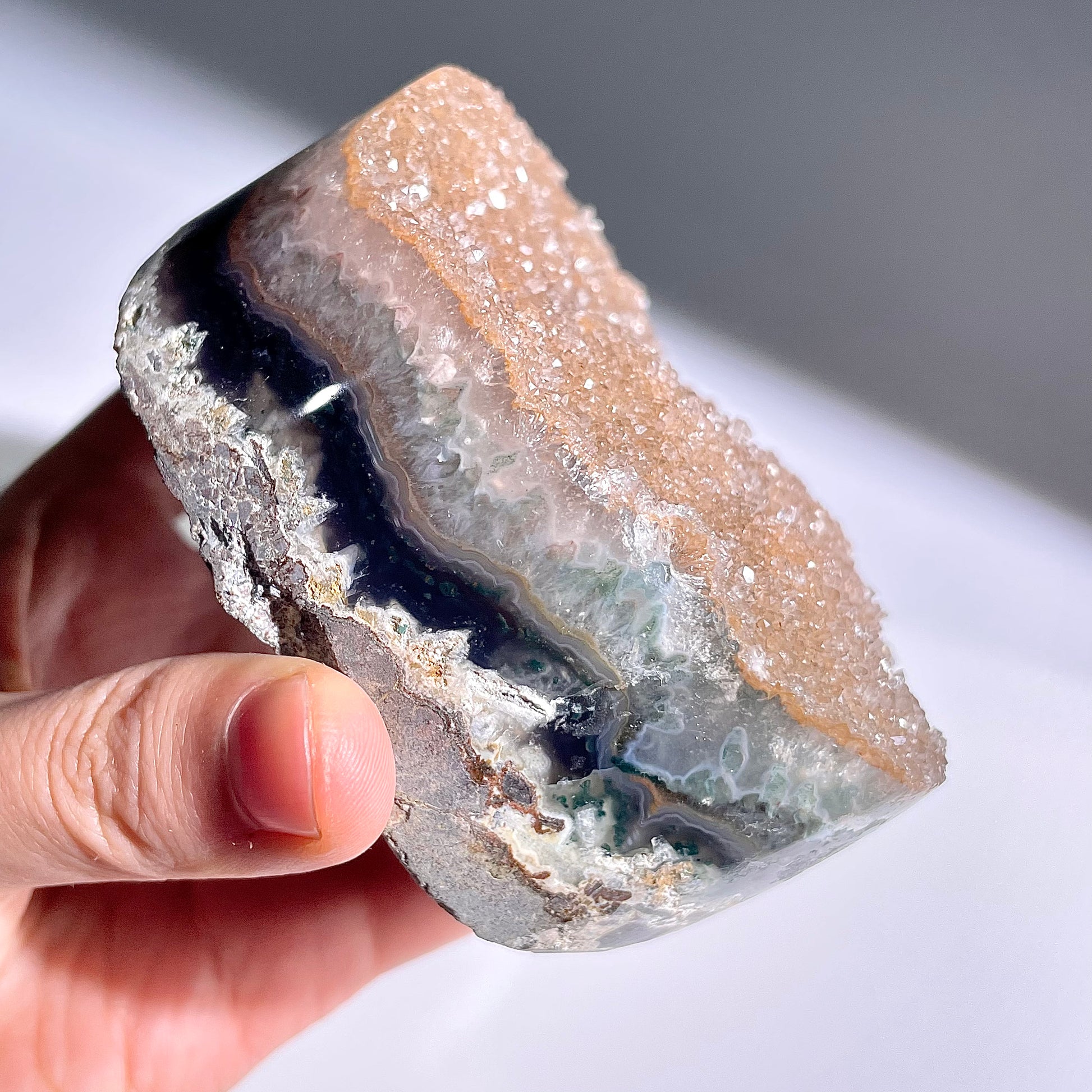 アゲートの故事:江戸時代の大阪の町に、家族同士の喧嘩が絶えず、夜も悩みで眠れず、店の経営もうまくいかない町人の女将がいました。日々憂いに浸り、暮らしに希望が見えなくなっていました。ある日、住吉神社に参拝したところ、神官から「このアゲートをリビングに置けば、家族の和が戻り、眠りも深まり、福と幸せが集まる」と贈られました。その晩から女将はぐっすり眠れるようになり、家族関係も和み、店の経営も順調になりました。この話が広まり、人々はアゲートを「和と幸せをもたらす石」と崇め、今でも多くの人が家に置いています。